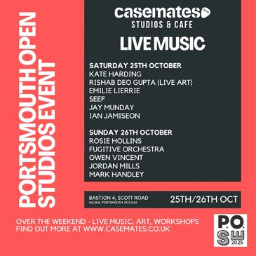 Casemates Studios has it's very own cafe and licensed bar with comfortable outdoor and indoor seating. We serve a wide selection of hot and cold drinks and hot and cold food, including alcoholic beverages and delicious homemade cakes. It is the perfect place to relax between sessions and unwind. Vegan and gluten-free options of food are also available.